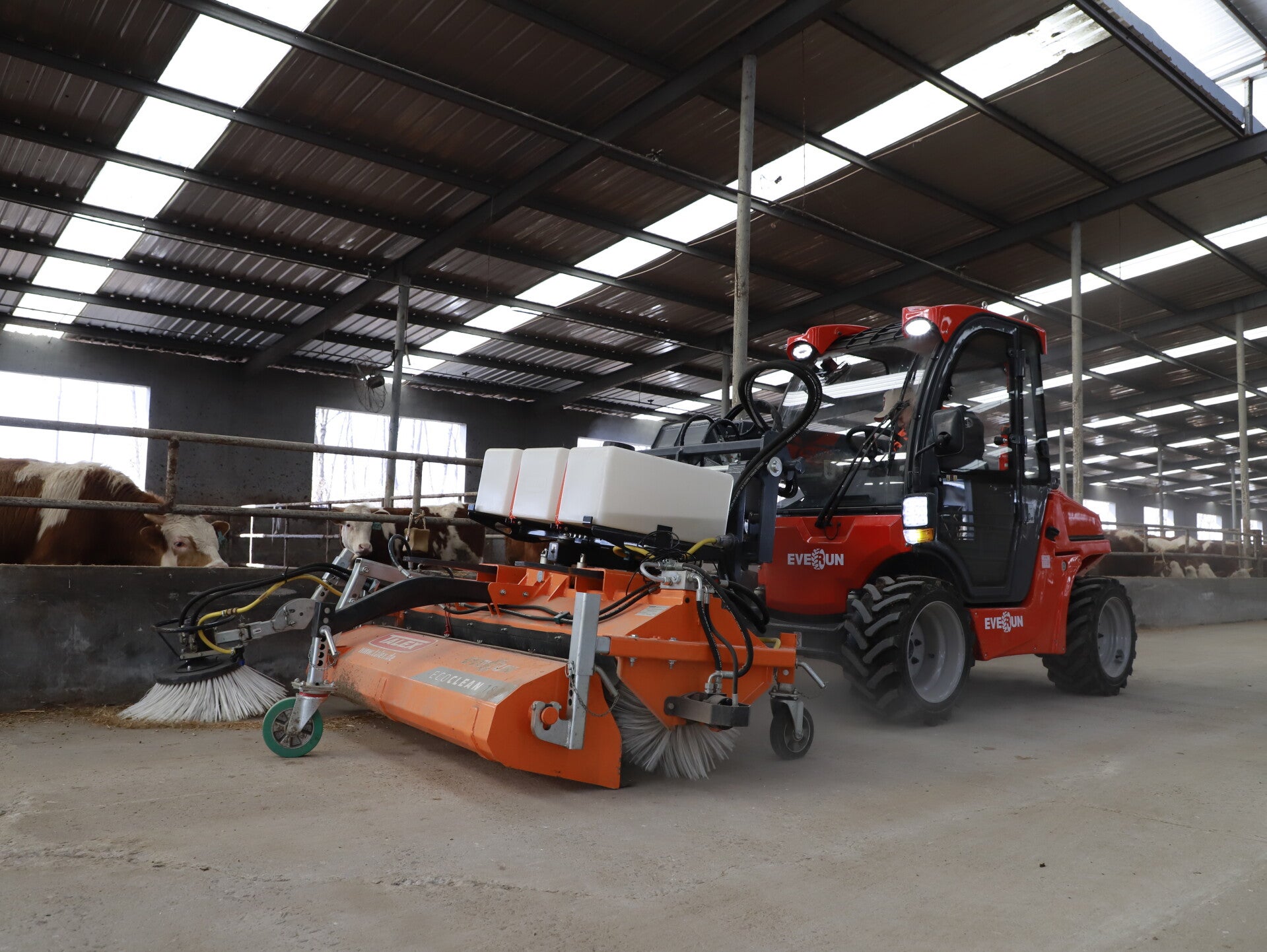Durch die kompakte Bauweise und die Hinterachslenkung kann die Maschine auch in engen Stall- und Hofbereichen eingesetzt werden.